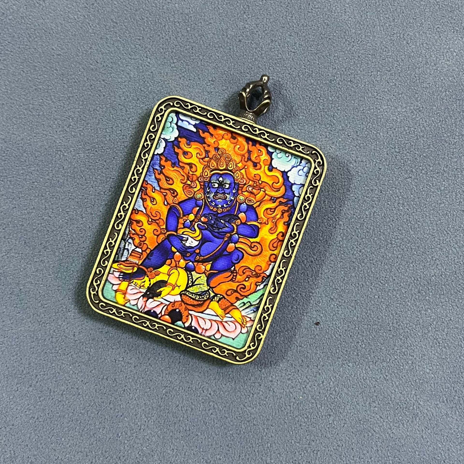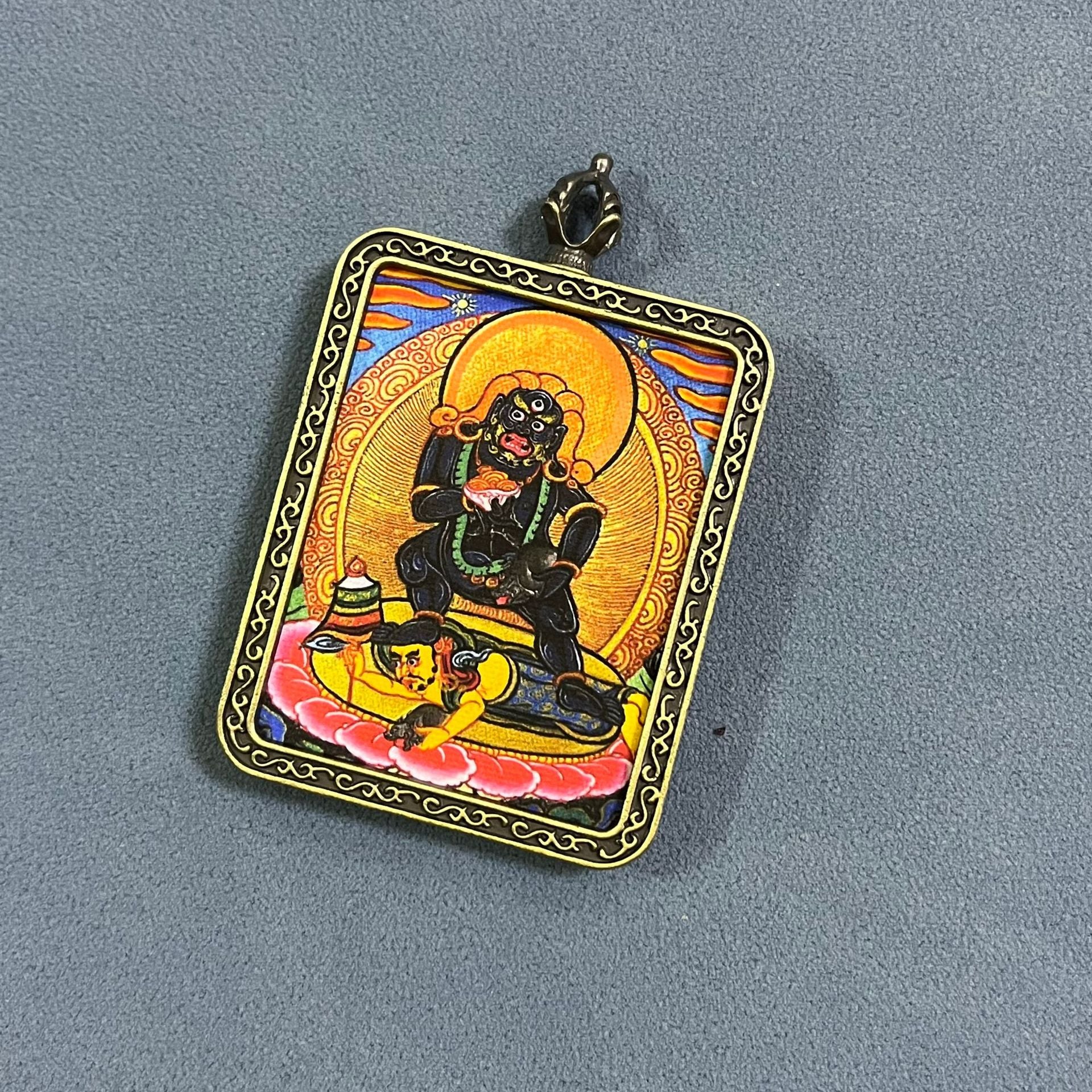 Black God of Wealth Thangka Brings wealth Beautiful pendant necklace Ancient Chinese pure painting art