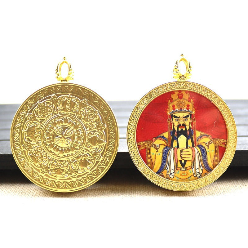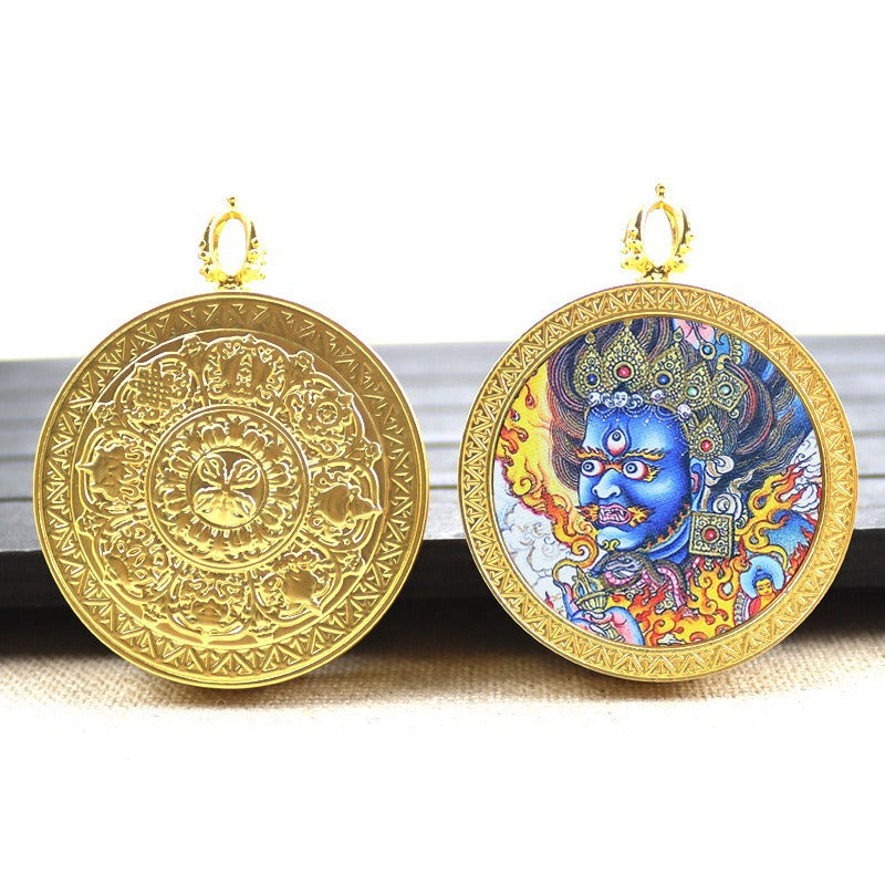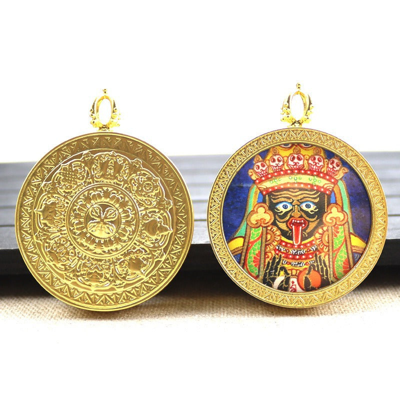 Gold round thangka pendant necklace Beautiful Chinese pure painting art