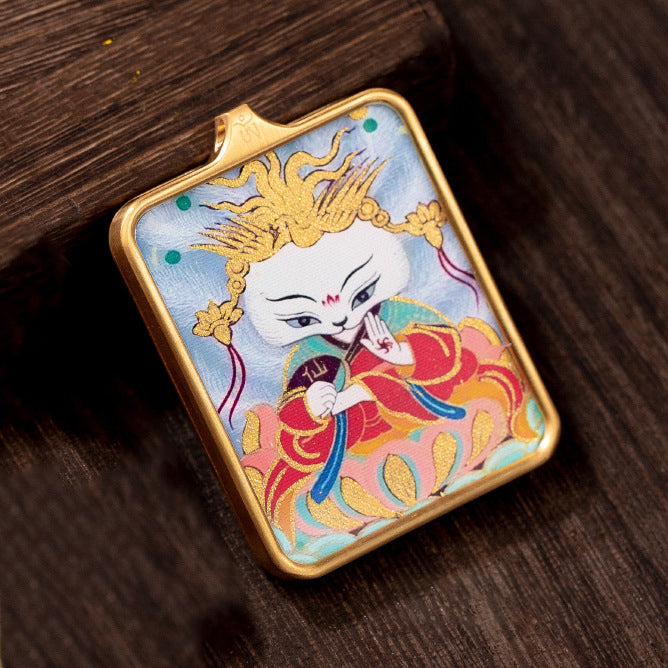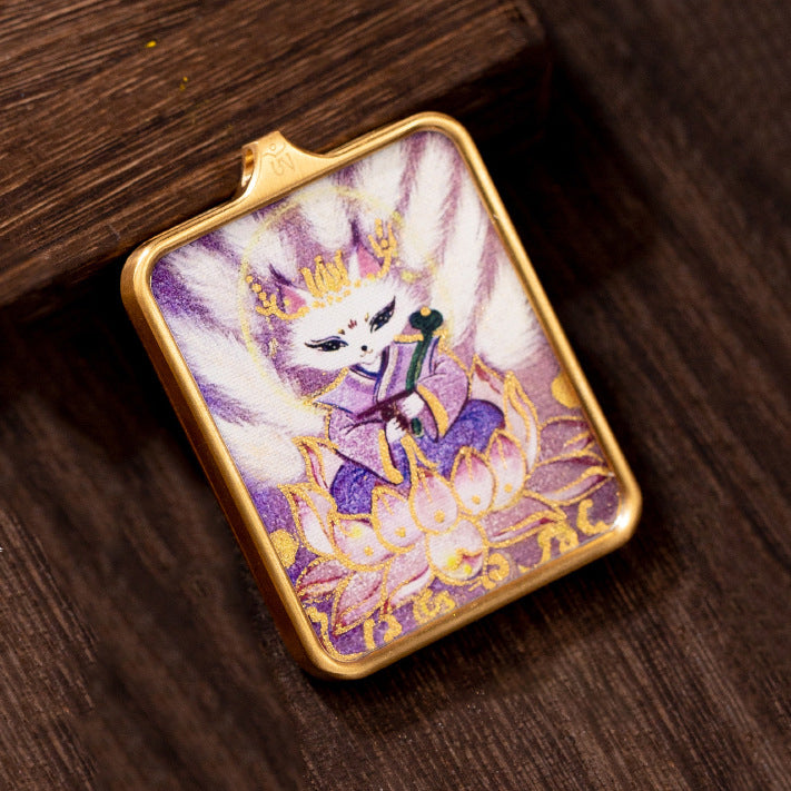 Nine-tailed fox fairy pendant necklace with a small Thangka attached