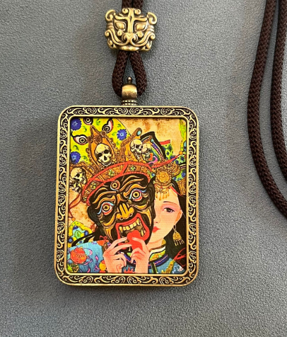 Tibetan Buddhism Intangible Cultural Heritage Thangka Pendant Necklace (Literary Retro Style) 4