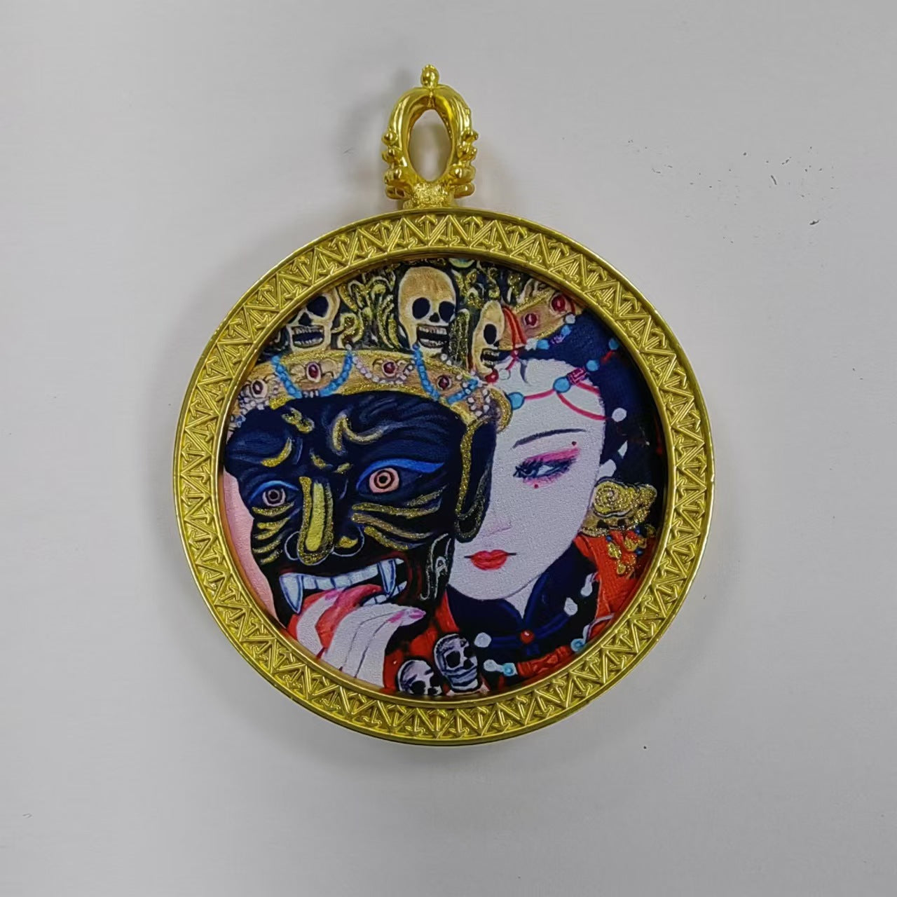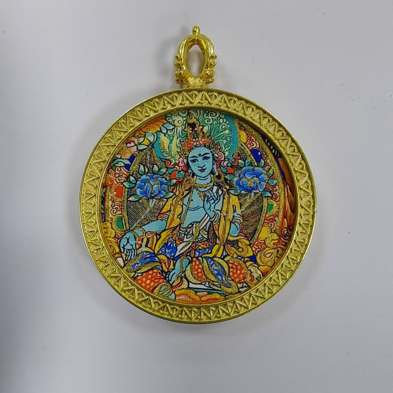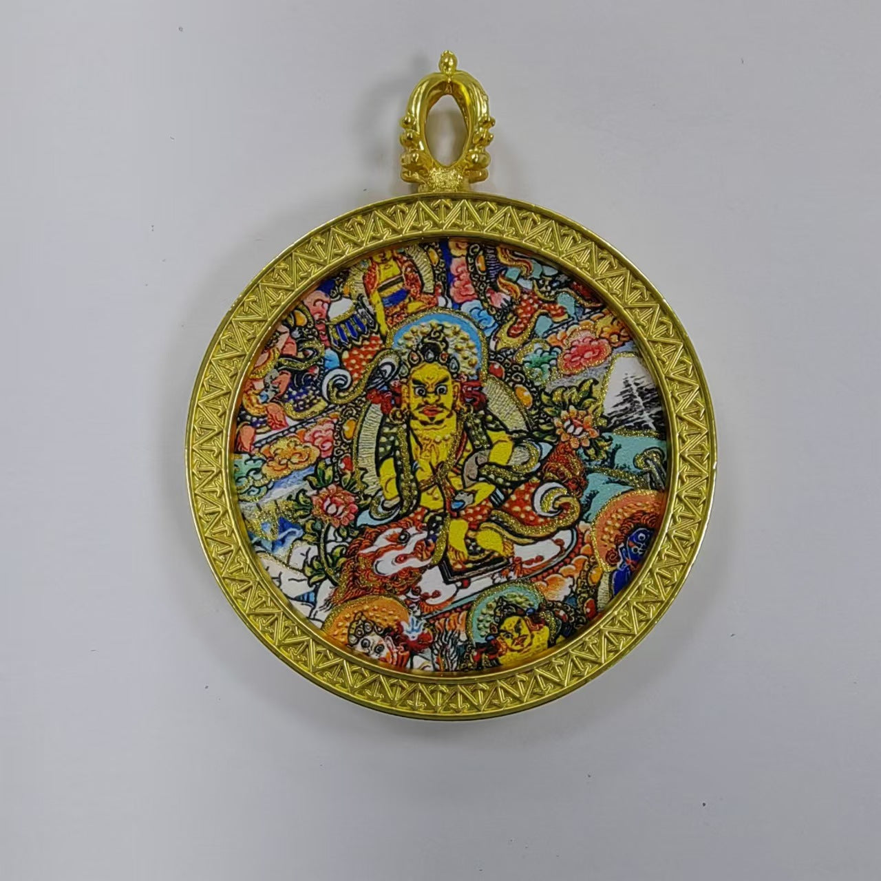 Round golden thangka pendant Beautiful pendant necklace Ancient Chinese pure painting art