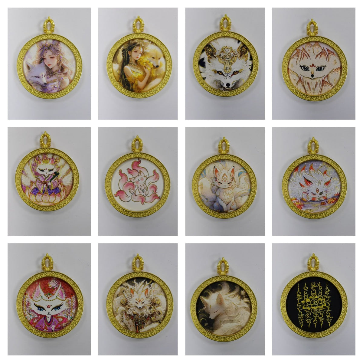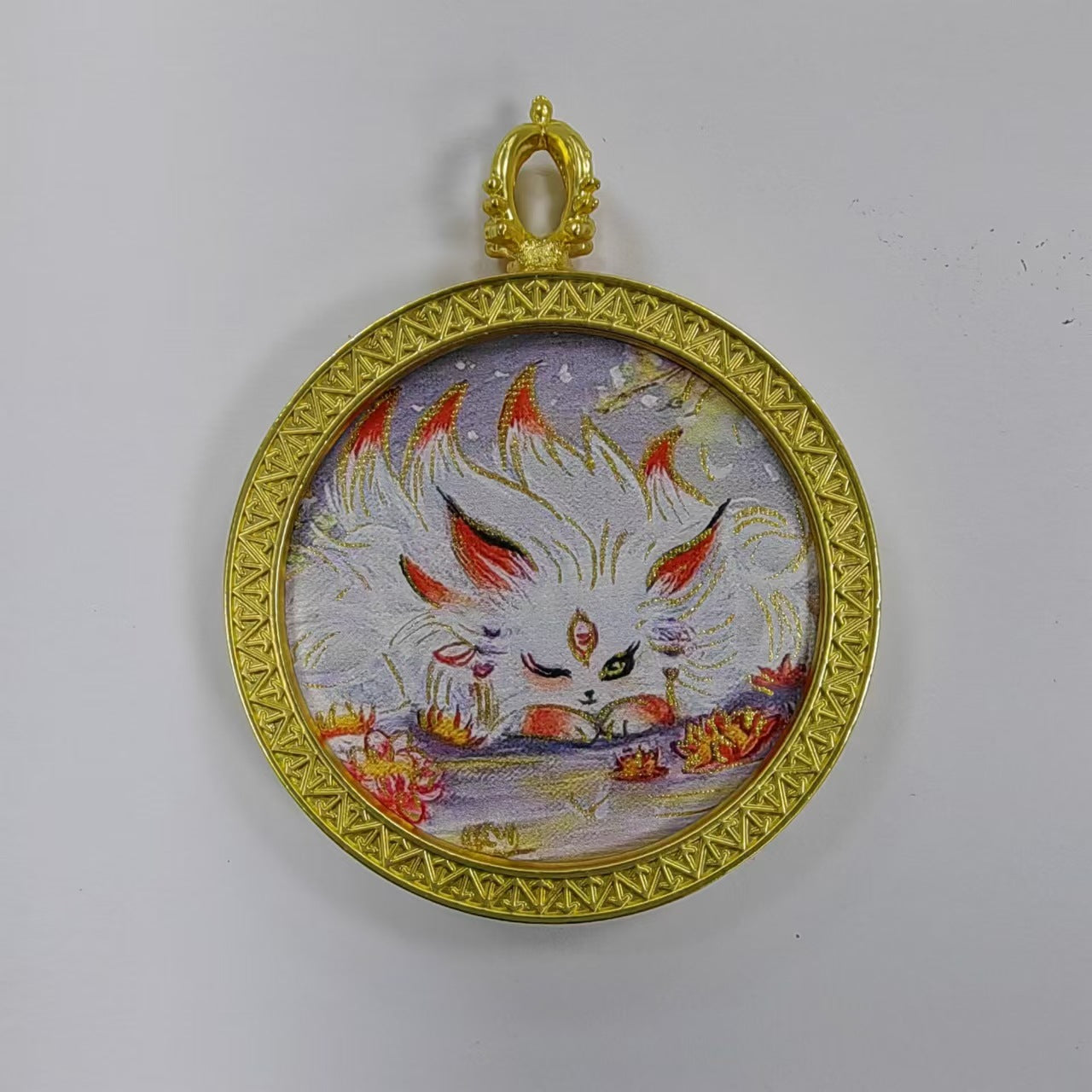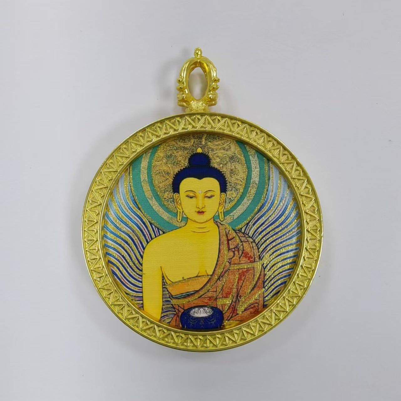 Round golden thangka pendant Beautiful pendant necklace Ancient Chinese pure painting art