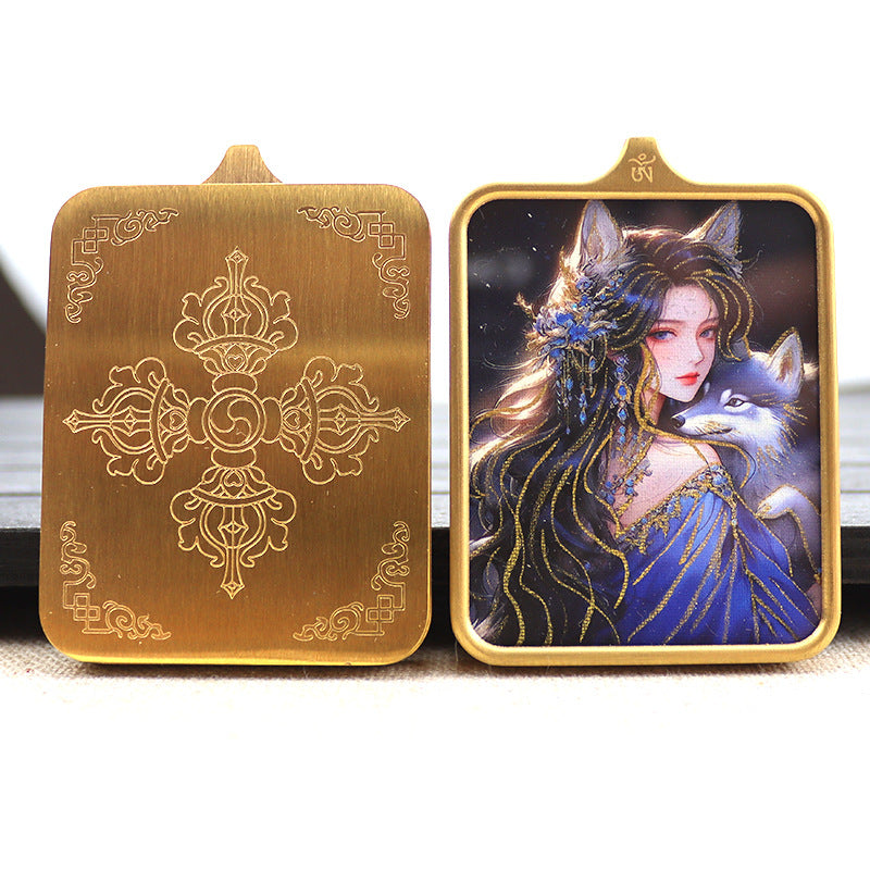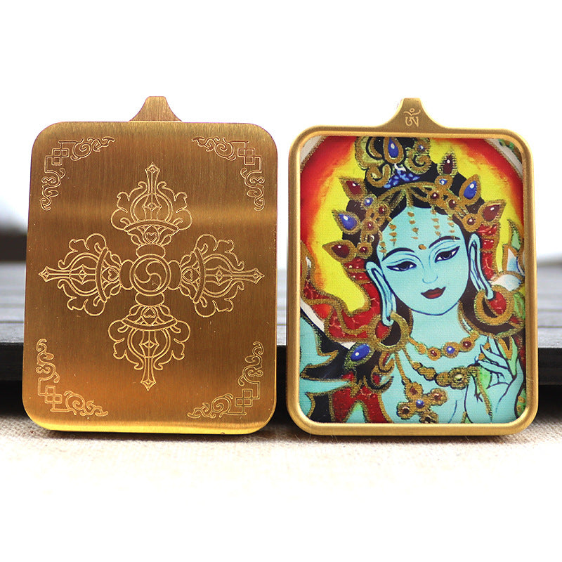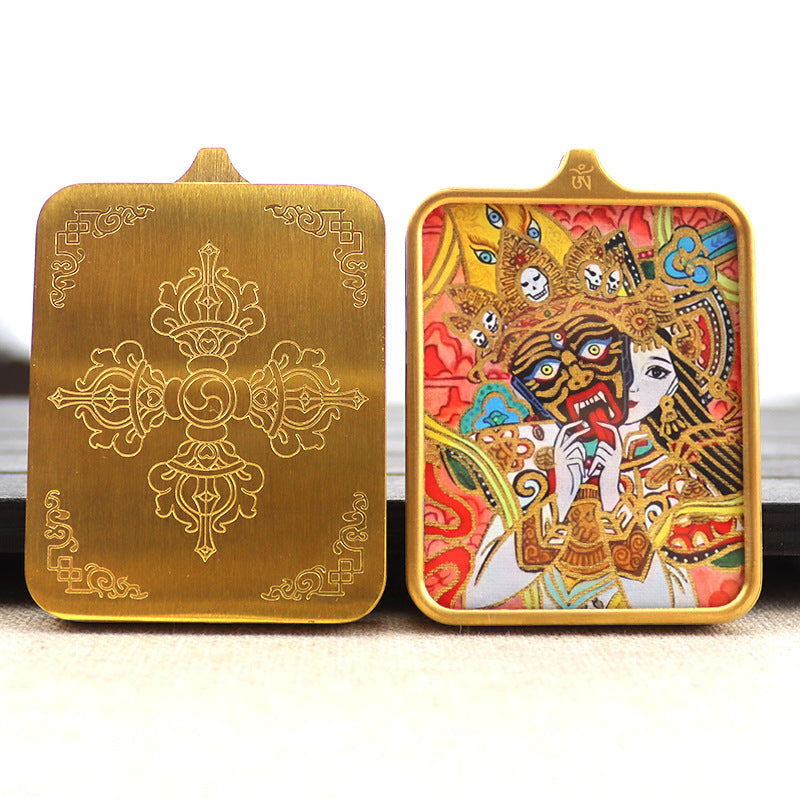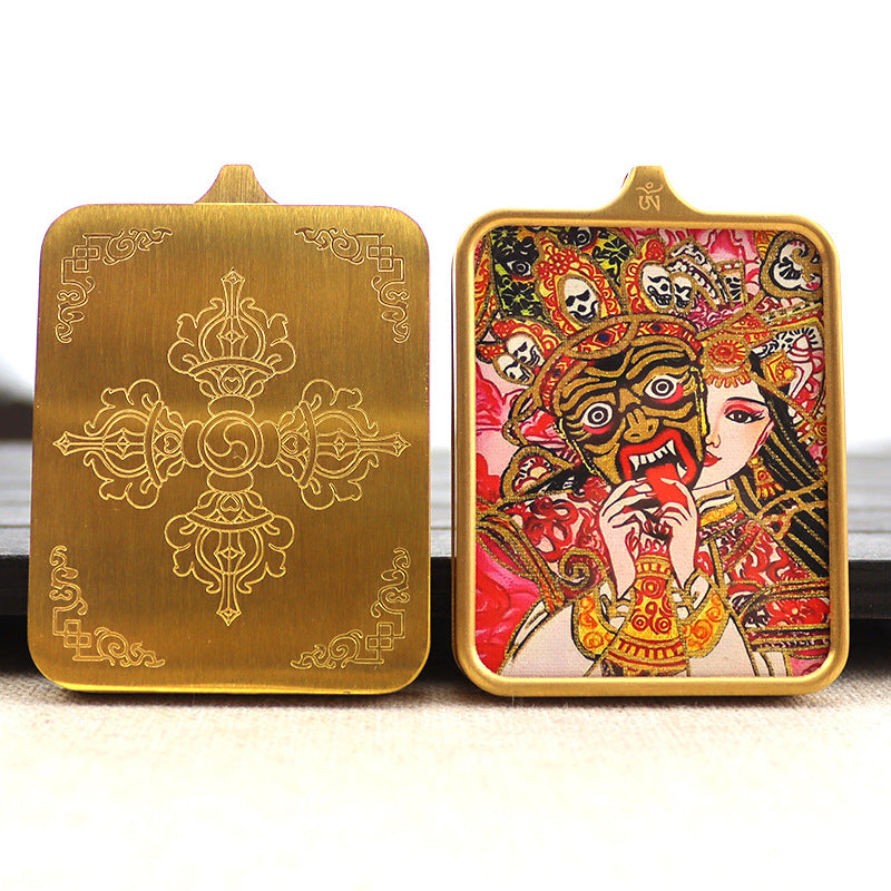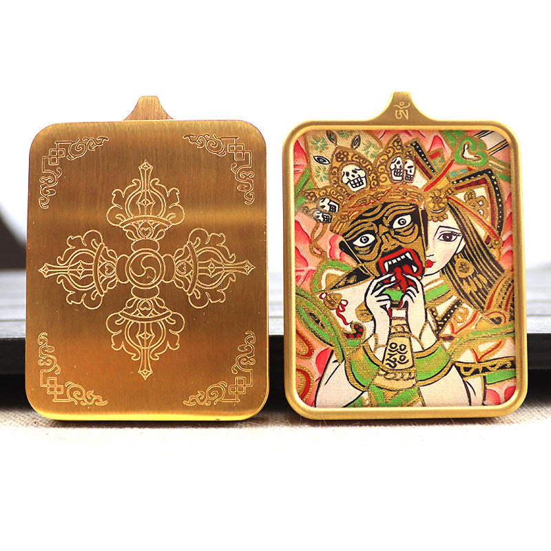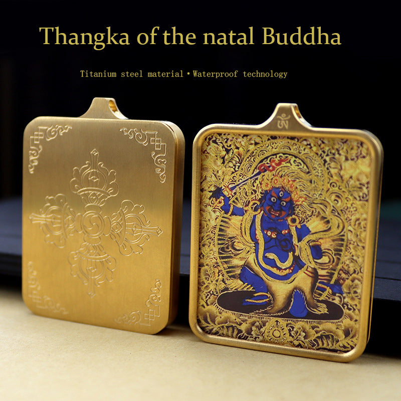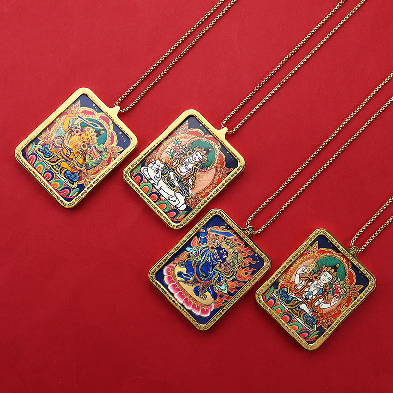 Titanium steel guardian thangka Beautiful Chinese Tibetan pendant necklace