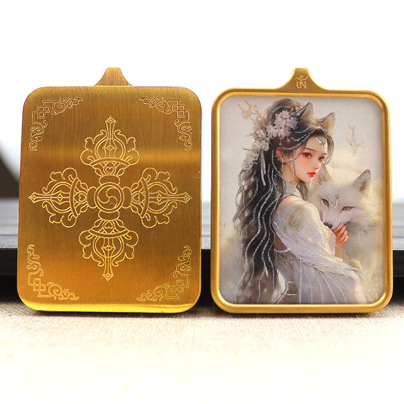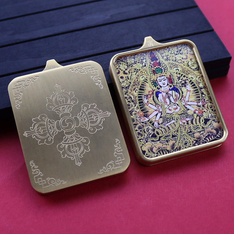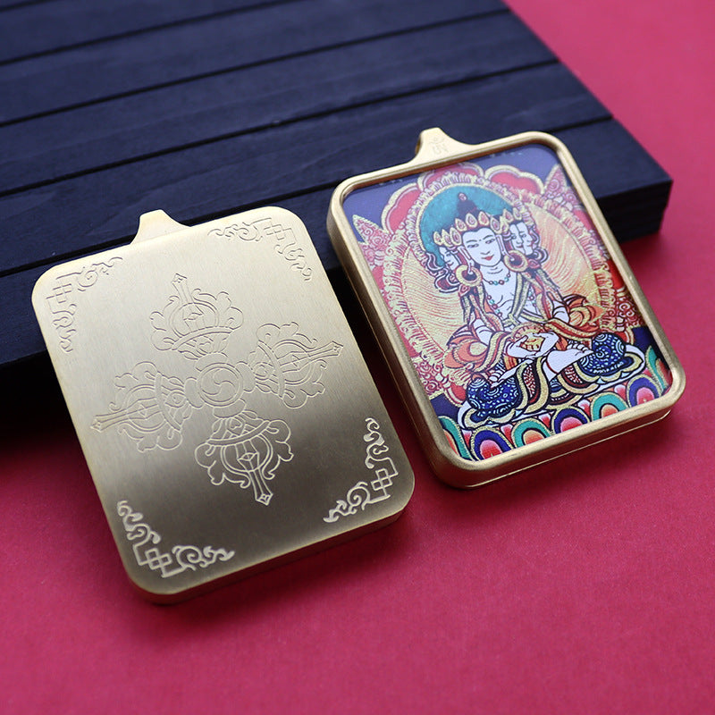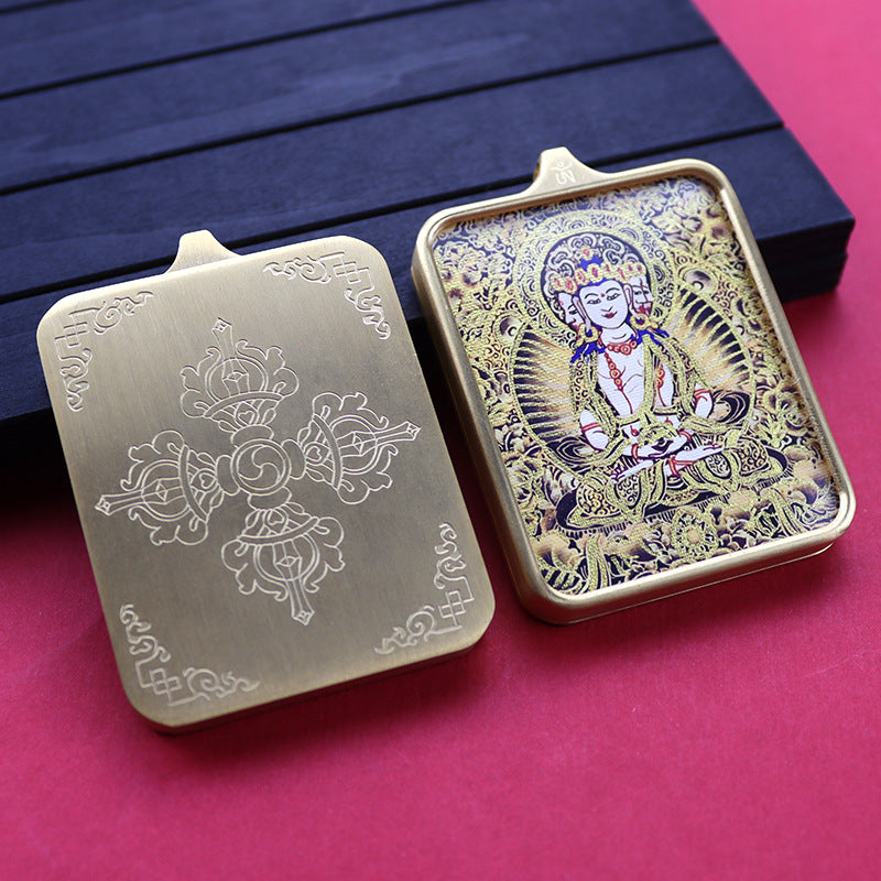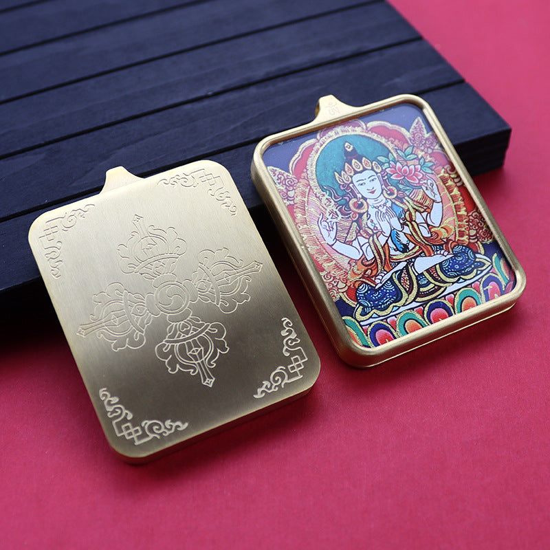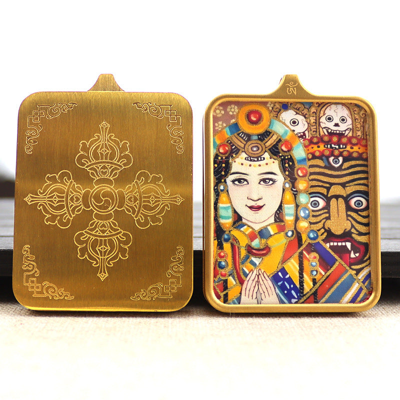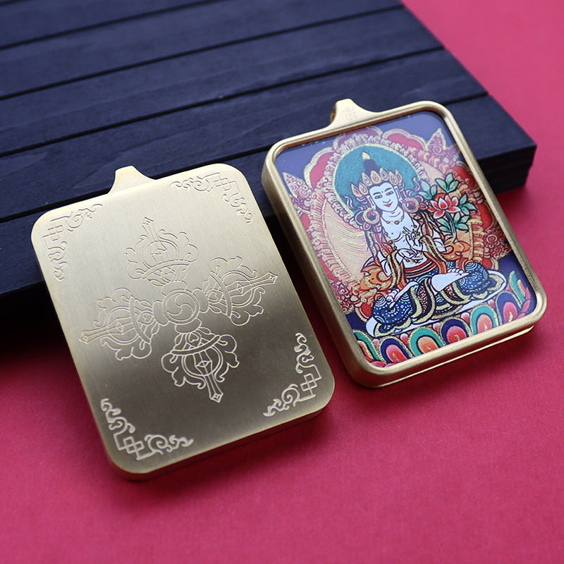 Titanium steel guardian thangka Beautiful Chinese Tibetan pendant necklace